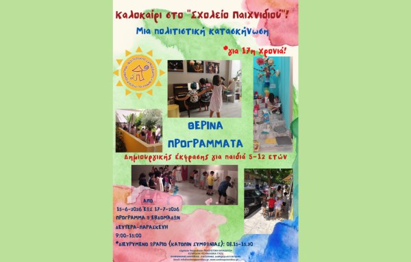 Θερινά προγράμματα δημιουργικής έκφρασης για παιδιά 5-12 ετών έναρξη 15/6/2026 (πρόγραμμα 5 εβδομάδων)